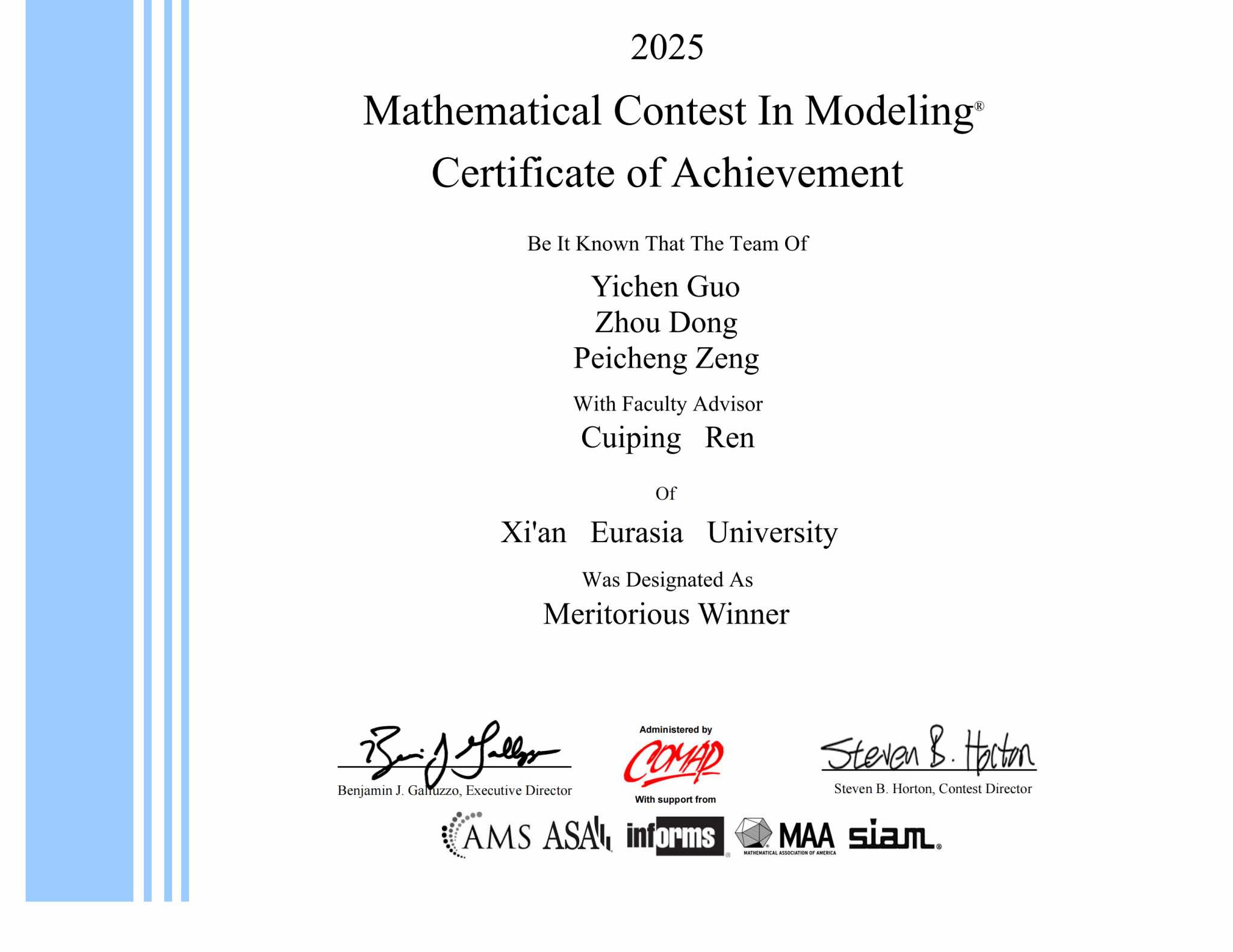 这份荣誉不仅是对学子们学术能力的肯定,更是我校数学建模人才培养成果的有效体现。
