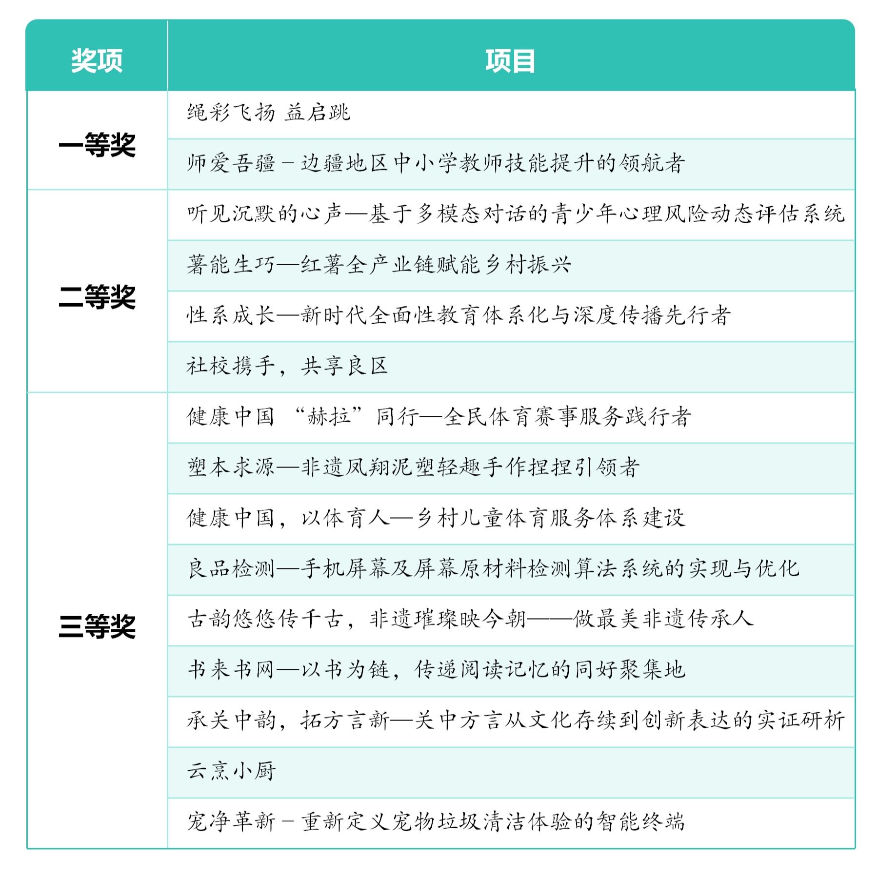 社会治理和公共服务赛道上,学子聚焦民生痛点发力:“师爱吾疆”扎根边疆地区,助力中小学教师教学技能提升;“性系成长”深耕全面性教育体系化传播,为青少年成长保驾护航;“健康中国‘赫拉’同行”以全民体育赛事服务为抓手,推动体育公共服务提质升级。这些项目从教育、医疗、体育等民生领域切入,用专业能力回应社会需求。