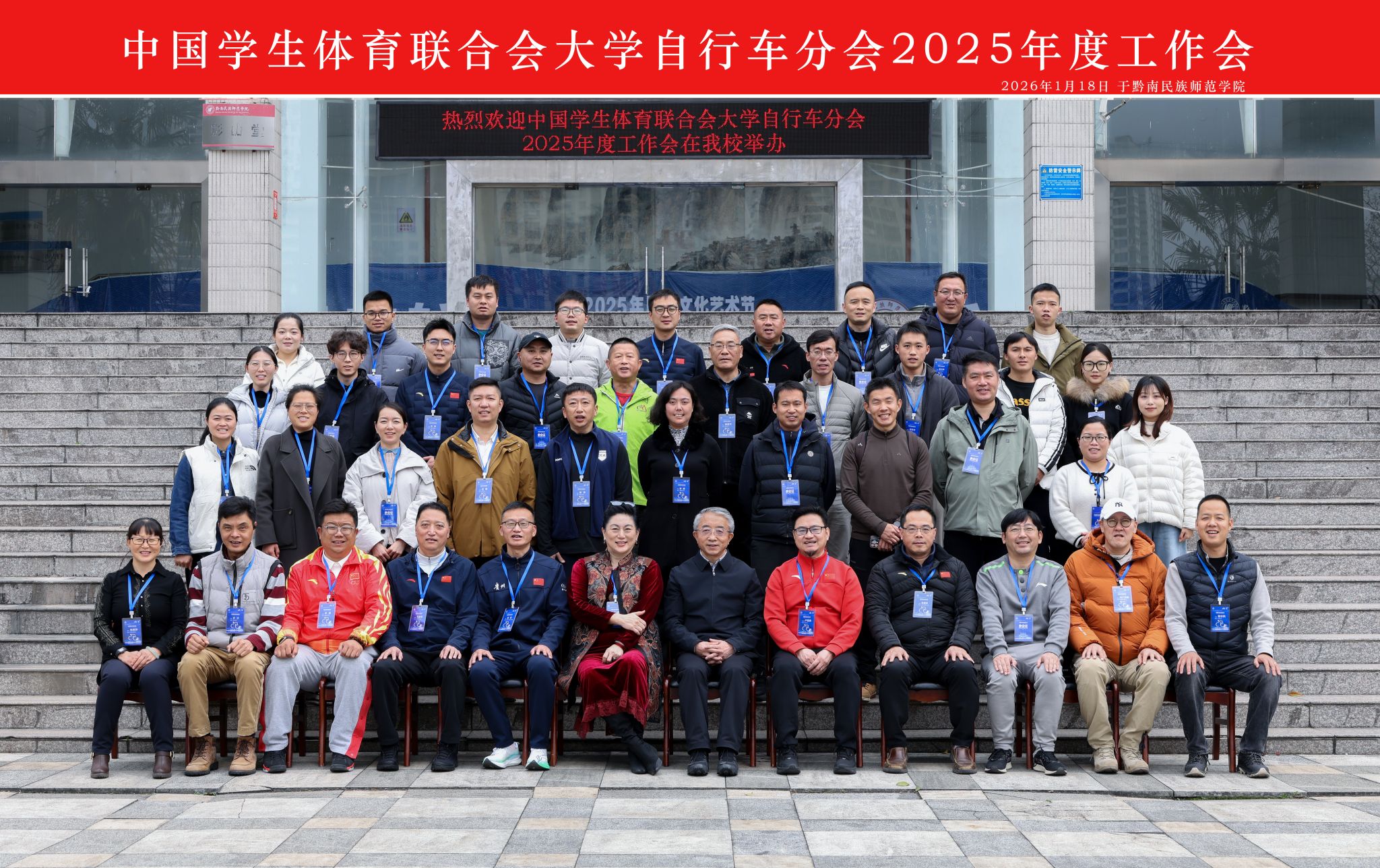 1月18日,由中国学生体育联合会(简称“中国学体联”)主办,中国学生体育联合会自行车分会(简称“自行车分会”)与黔南民族师范学院联合承办的自行车分会2025年度工作会在黔南民族师范学院举行。