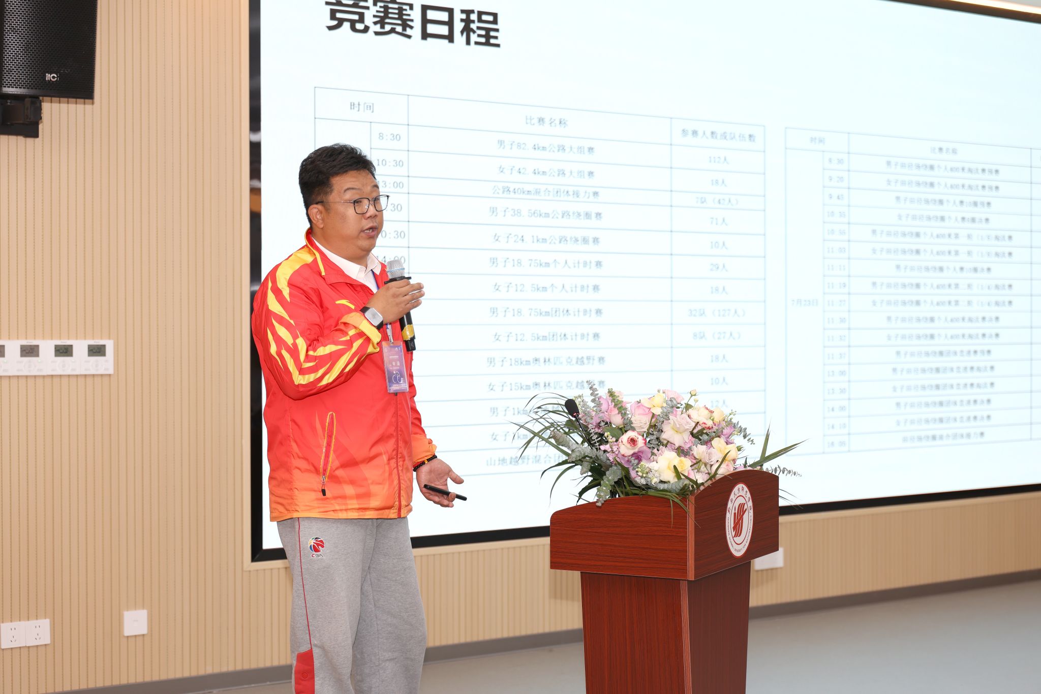 本次会议作为总结2025年工作成果、全力筹备2026年世界大学生自行车锦标赛的重要会议。中国学体联副主席、自行车分会主席、北京大学校务委员会副主任安钰峰,北京大学教授张锐出席会议。来自北京大学、哈尔滨工业大学、西安交通大学、江汉大学、西安欧亚学院等全国20余所高校的体育部领导、自行车项目专家、教练员、裁判员等代表齐聚一堂,共商高校自行车运动发展大计。我校体育与健康课程中心主任申涵老师受邀参加本次会议,并就全年裁判工作进行专题汇报。