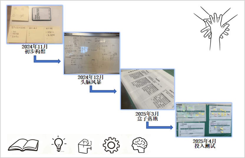 自 2024 年 11 月启动研发,团队围绕工具盒细节召开约 30 次研发会议,对画布设计、卡片分类等进行头脑风暴。为确保工具效果,在 5 次 PBL 工作坊中邀请一线工作者测试,收集反馈并持续优化,使工具既具专业性与科学性,又能满足教育实际需求。